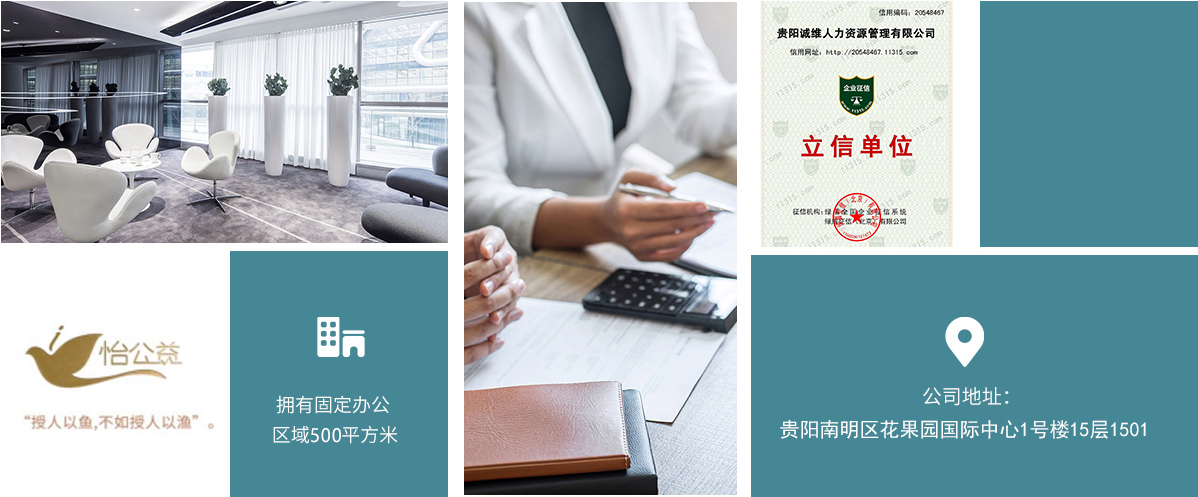 貴陽誠維人力資源管理有限公司始創(chuàng)于2005年,公司總部位于中國西南地區(qū)筑城貴陽。貴州省首批取得《人力資源服務許可證》和《勞務派遣許可證》的專業(yè)服務公司。 公司業(yè)務涵蓋國內勞務派遣、人力資源外包、人事代理、招聘、管理咨詢與培訓等服務。 自成立16余年以來,長期致力于服務民眾、服務社會、服務市場,連續(xù)6年被評為“人力資源誠信服務機構”。 2019年8月成功當選“貴州省人力資源服務行業(yè)協(xié)會”副會長單位。 2019年3月成功當選“貴陽市人力資源服務行業(yè)協(xié)會”會長單位。 2020年-2021年連續(xù)兩年入選